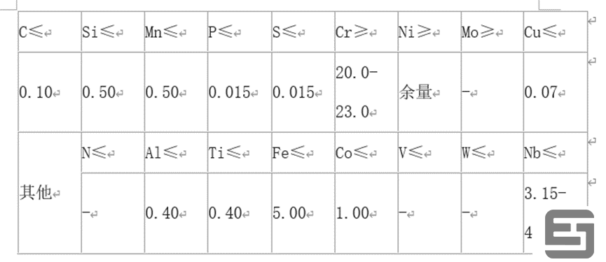 Inconel625¼¼Êõ±ê×¼»®¶¨µÄÐÔÄÜ£º ¼û±í3-1